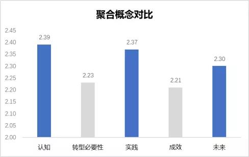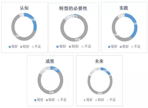 但是藍顏色最少的是哪方面呢?是對轉(zhuǎn)型必要性的認(rèn)知及轉(zhuǎn)型成效,這是一些痛點和短板。