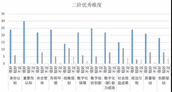 得到基本結(jié)論是,總體上大部分企業(yè)充分地領(lǐng)會了黨中央、國務(wù)院對數(shù)字化轉(zhuǎn)型的部署要求,都有意識、有決心、有需求、有實施、有成效、有規(guī)劃地快速推進數(shù)字化轉(zhuǎn)型工作,作為各自行業(yè)的引領(lǐng)者,30家央企都取得了一定的轉(zhuǎn)型成效,正快速轉(zhuǎn)變?yōu)榫哂腥蚋偁幜Φ氖澜缫涣髌髽I(yè)。