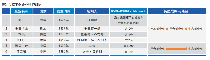 本文選取六家分別來自中國、美國、德國和日本的“變革巨人”進(jìn)行深度研究,這些案例分別是:海爾、阿里巴巴、蘋果、亞馬遜、西門子、豐田汽車。