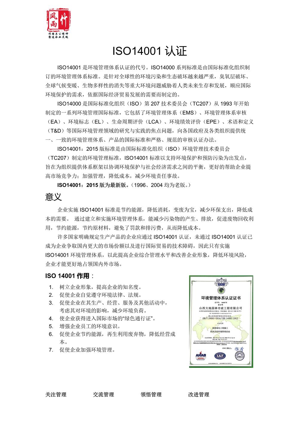 2.ISO14001認(rèn)證(環(huán)境管理體系認(rèn)證)