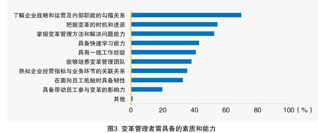 變革推進責任人需要具備較強的綜合素質(zhì)和能力,其中主要的素質(zhì)和能力要求為(如圖3所示):
