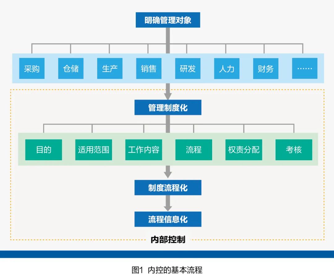 內(nèi)控要有標準,而不是管理者隨意決定和改變,因此應制定內(nèi)控管理制度予以約束;要想使員工自覺地執(zhí)行管理制度以及形成管理工具,明確分工、授權和職責,就要將制度細化為管理流程;管理流程確定后,便要確保流程得以嚴格執(zhí)行,不能因為人情、惰性等更改或略過任意環(huán)節(jié)。