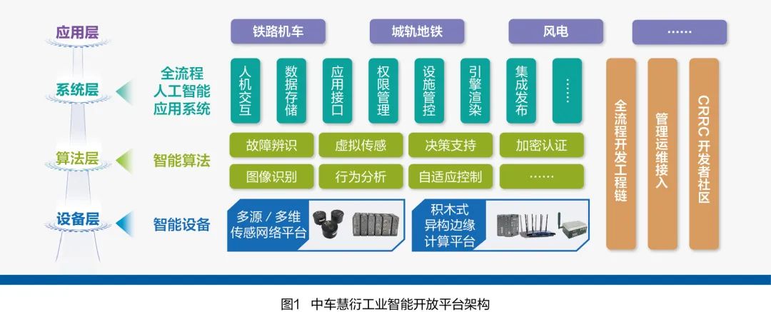 針對(duì)上述軌道交通、風(fēng)電領(lǐng)域裝備健康管理存在問(wèn)題,中車(chē)研究院歷經(jīng)7年,構(gòu)建包括設(shè)備層、算法層、系統(tǒng)層、應(yīng)用層的云、邊、端協(xié)同的中車(chē)慧衍工業(yè)智能開(kāi)放平臺(tái)(如圖1所示),幫助用戶(hù)企業(yè)提升裝備健康管理水平。